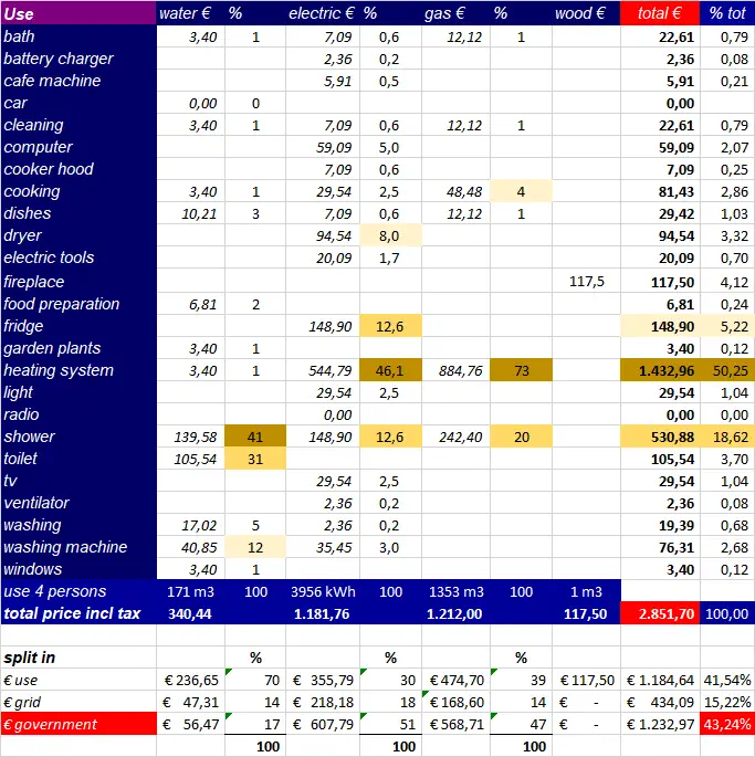 In the chart I show you the use of all current types of energy in my house.