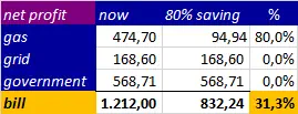 (2021: In my calculation of the profit of insulation where there was e reduction of 80% of the gas, the netto profit is 31%)