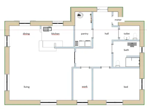 In the kitchen you need warm and cold water. There is a possibility that the kitchen moves to the dining room with a
