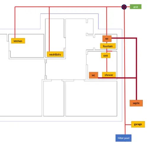 Direction output pipes to grid, pool or septic