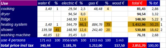 and for the radiators to warm the house. 46% of the electric and 73% of the gas. In total 50% of all costs.